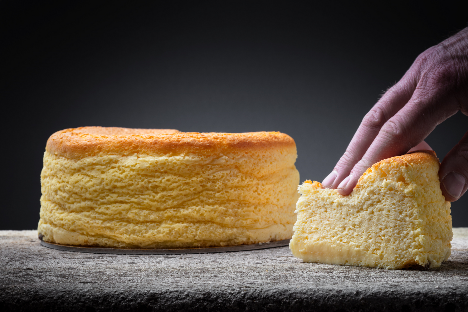 La ricetta è stata creata dallo chef giapponese Tomotaro Kuzuno , che si è ispirato a una cheesecake käsekuchen locale durante un viaggio a Berlino negli anni '60. Ha una consistenza caratteristicamente traballante e ariosa, simile a un soufflé quando è appena sfornata e una consistenza simile a una torta chiffon quando è fredda.